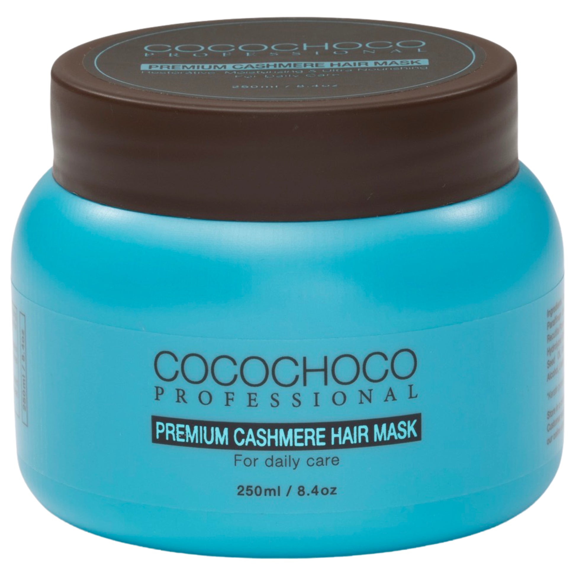 Μάσκα κασμίρ Cococho δίνει στα μαλλιά μια μαλακότητα που μοιάζει με κασμίρ. Αυτός ο τύπος έχει μια πλούσια, κρεμώδη συνέπεια που παρέχει έντονη διατροφή, ελαστικότητα και προστατεύει από τη θραύση. Εμπλουτισμένο με μαροκινό έλαιο, αραιωμένο λάδι και βιταμίνη Ε, αυτή η μάσκα είναι ιδανική για την αποκατάσταση ξηρών ή κατεστραμμένων μαλλιών.
